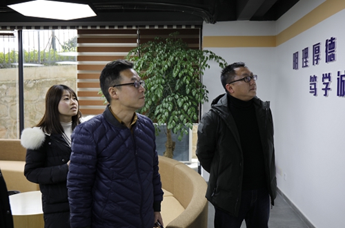 聽取匯報后,檢查驗收組實地考察了“一站式”學生事務服務中心、易班工作室等特色亮點基地。