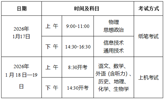 我市2025-2026學年度第一學期普通高中學業水平合格性考試將于2026年1月17日-19日進行。現將考試及報名有關安排公告如下: