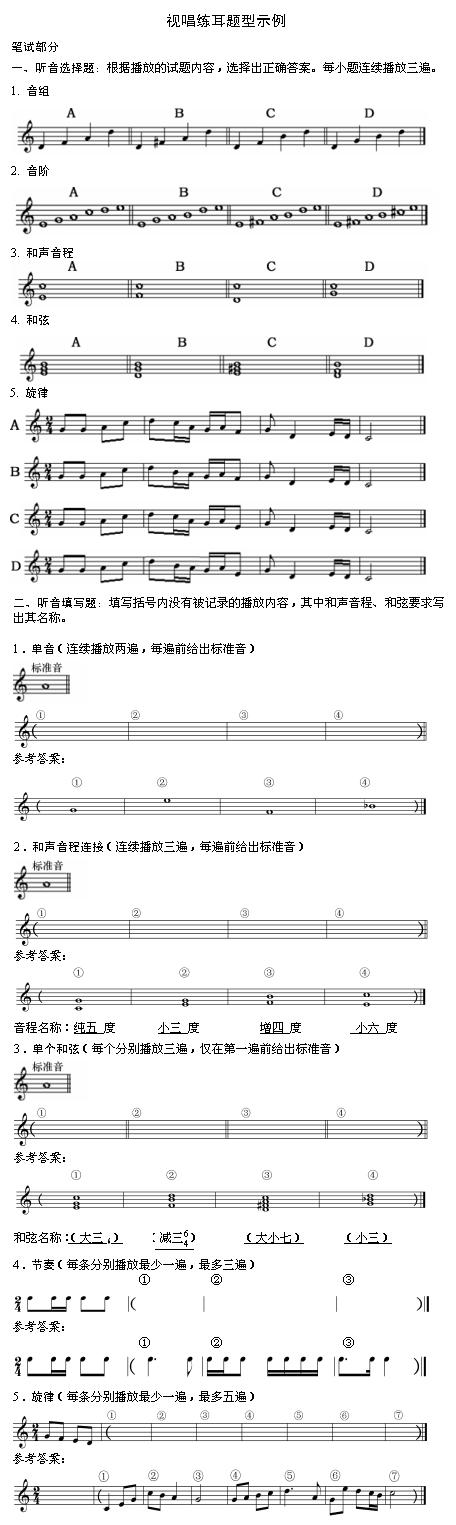 廣東省2008年普通高等學校招生統一考試視唱練耳考試題型示例