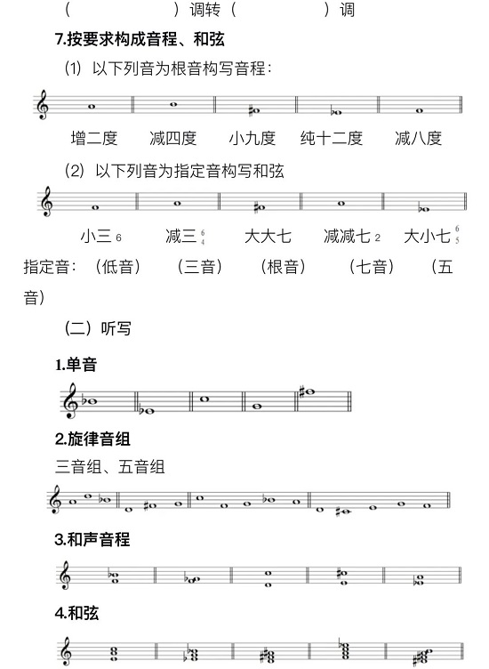 3.考試形式:采取筆試或機試方式,使用五線譜記譜,提供標準音a1參照。