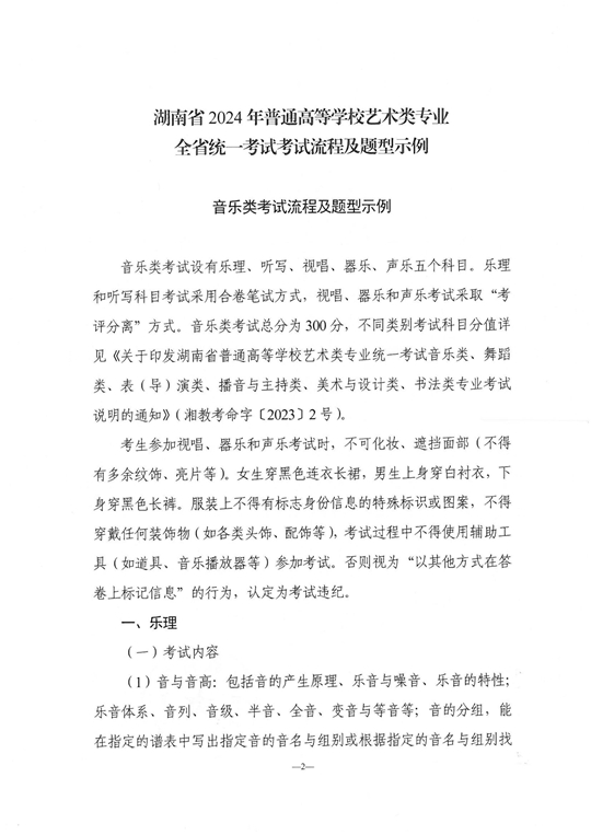 | 關于印發湖南省2024年普通高等學校藝術類專業全省統一考試考試流程及題型示例的通知 |