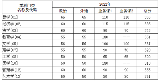 | 華中科技大學2022年碩士研究生招生考試復試基本分數要求 |