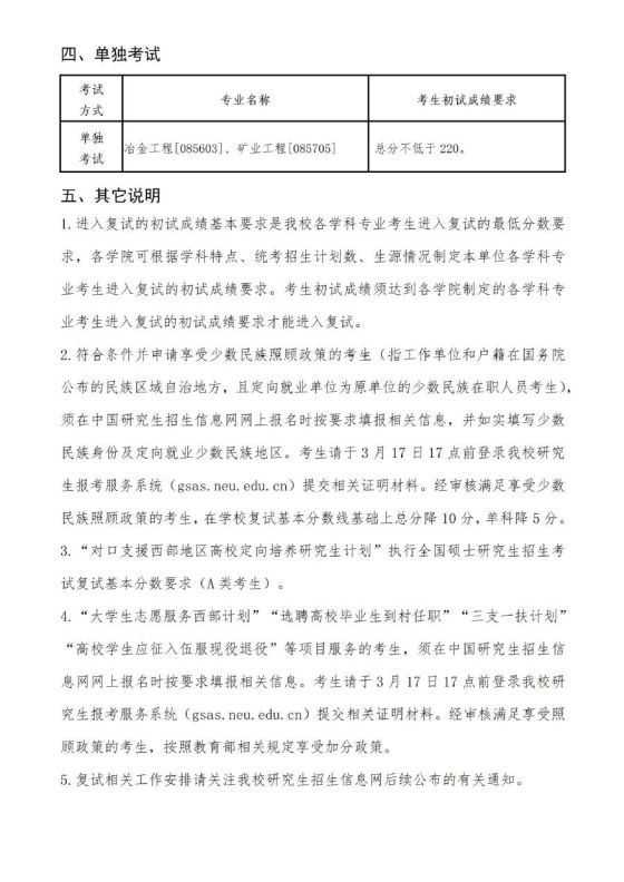 東北大學2024年碩士研究生招生考試考生進入復試的初試成績基本要求